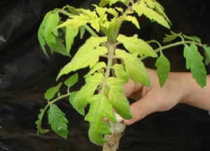 | 沒有鐵,植物生長(zhǎng)就會(huì)受到限制 | 缺少鐵元素的番茄苗 |