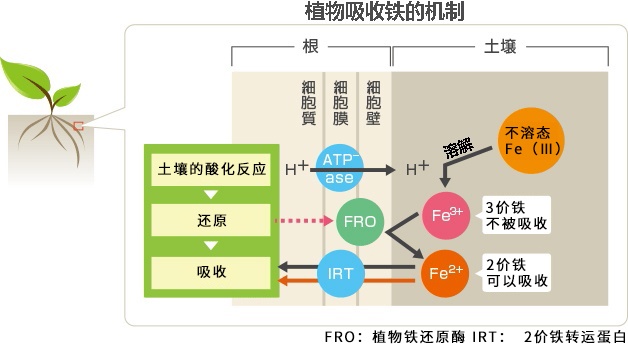 植物可以從土壤中吸收「2價(jià)鐵」形式的鐵素。地球被稱為鐵行星,確實(shí)土壤中富含大量的鐵,但是土壤中的鐵是3價(jià)鐵,而植物不能直接吸收3價(jià)鐵。植物需要消耗自身的能量將3價(jià)鐵還原成2價(jià)鐵,然后由根部吸收。